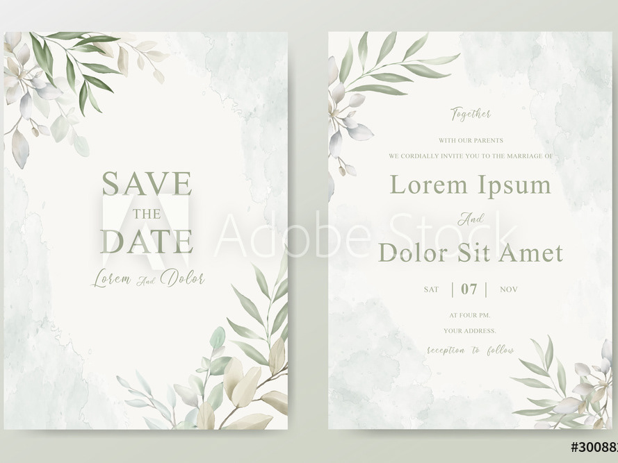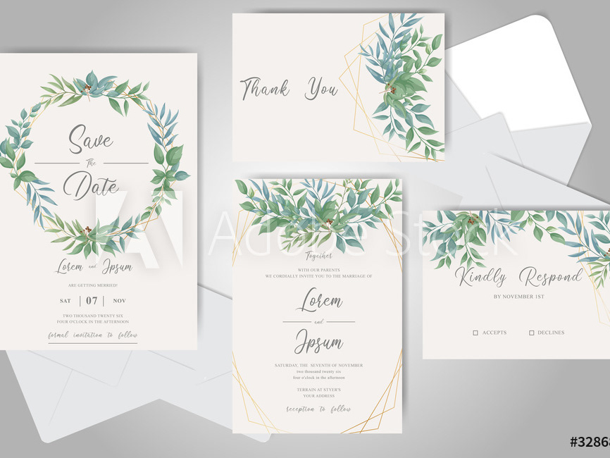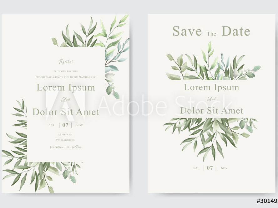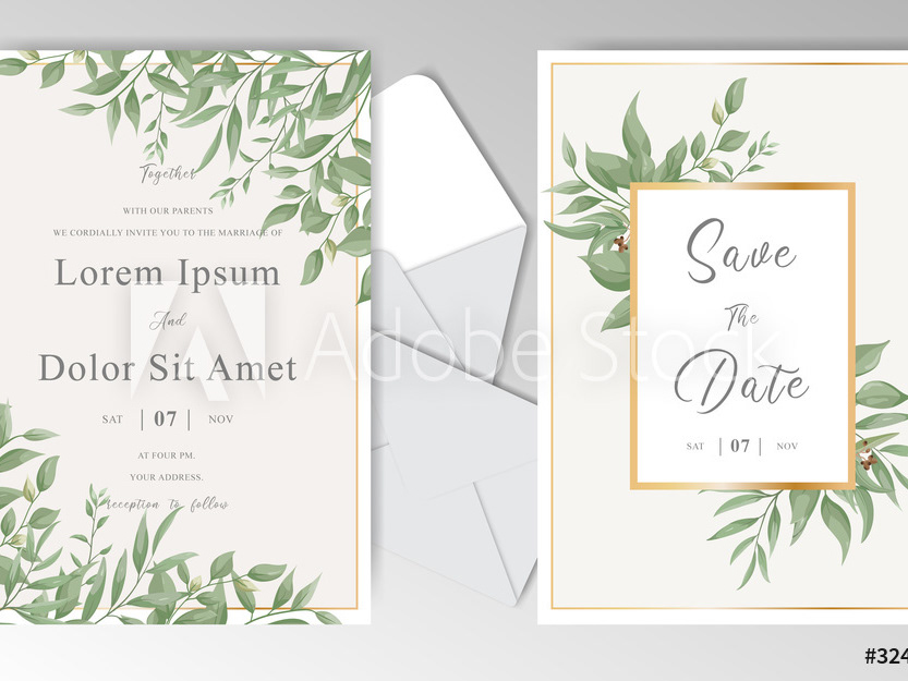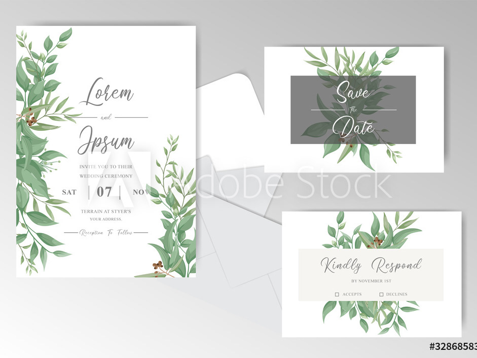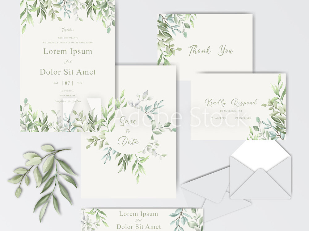 Wedding Invitation Card Set With Elegant Foliage