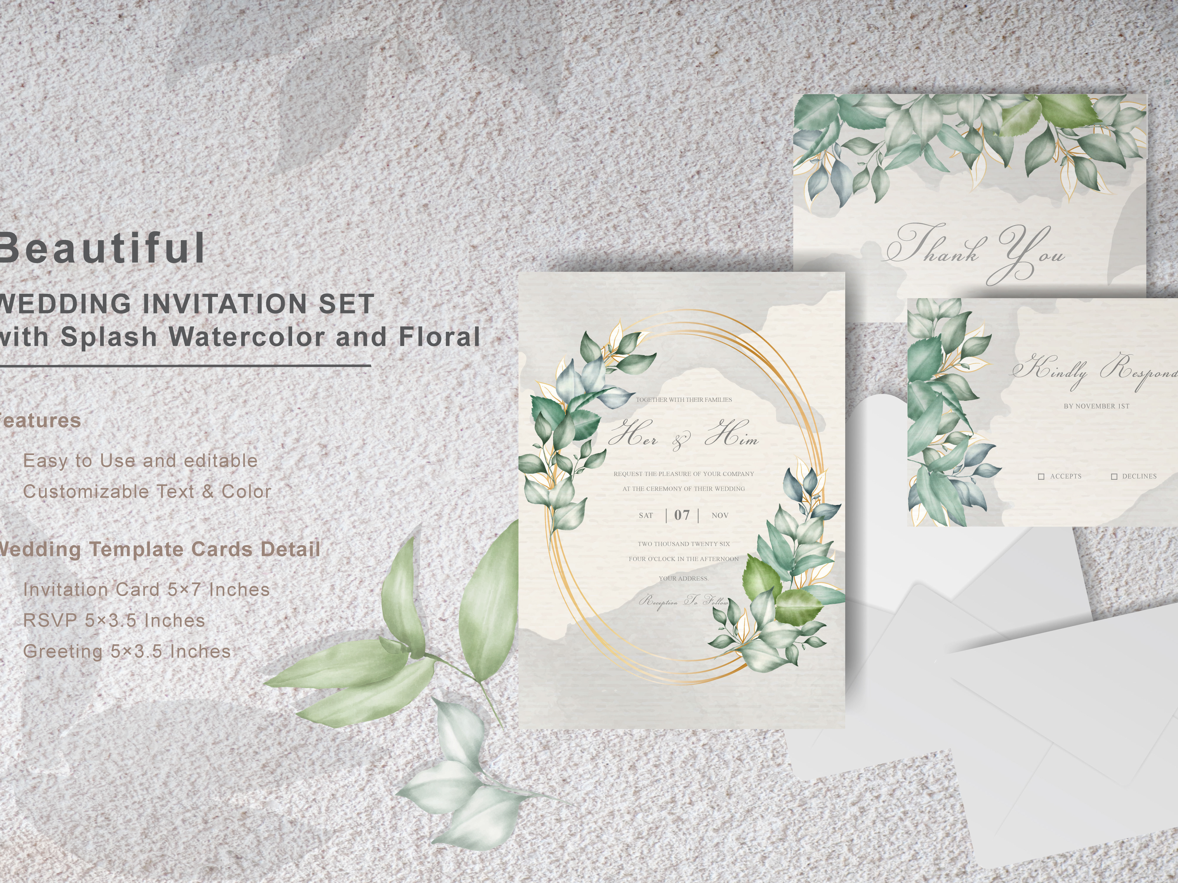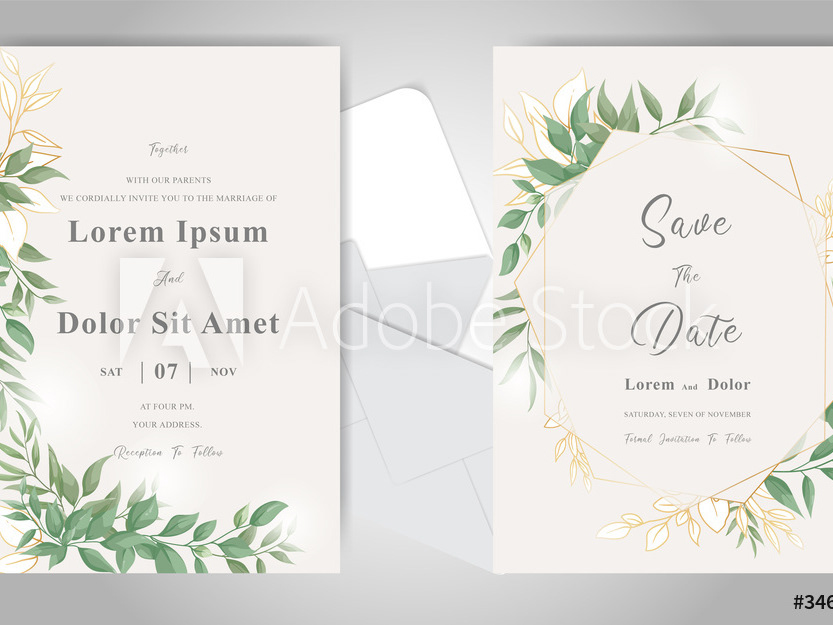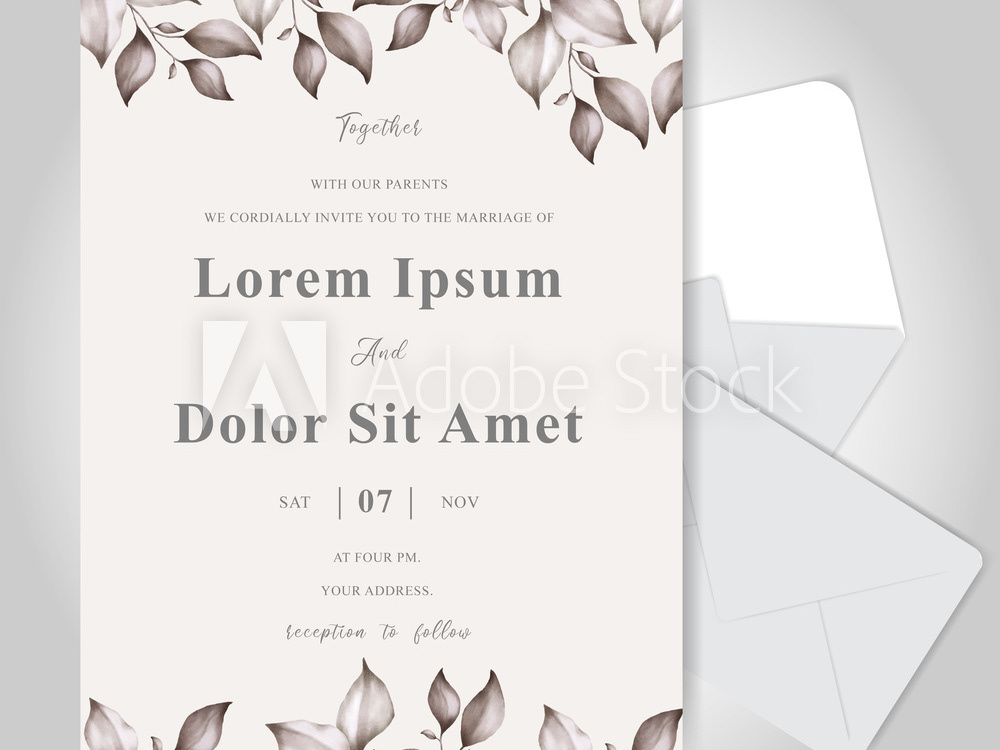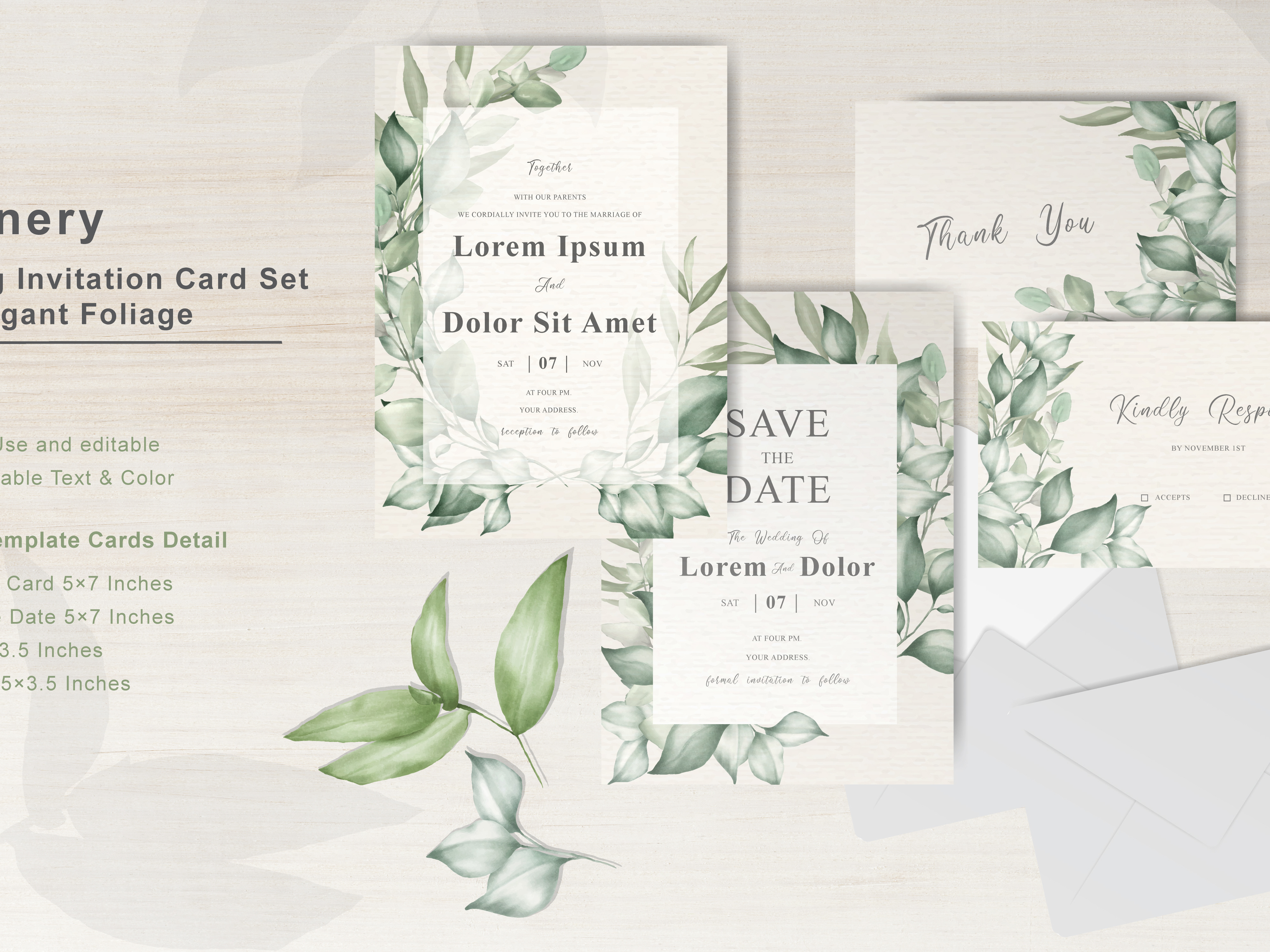 Wedding Invitation Card Set With Elegant Foliage