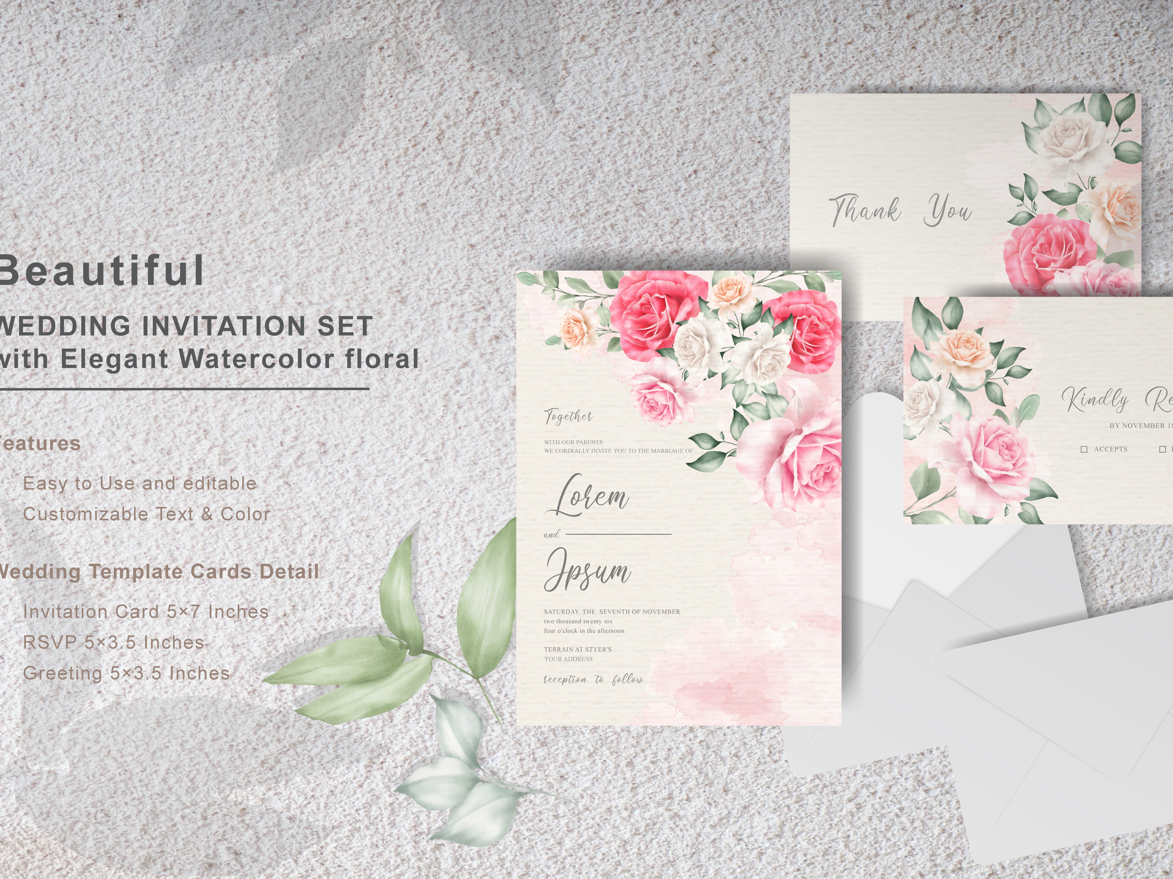 Editable Watercolor Wedding Card