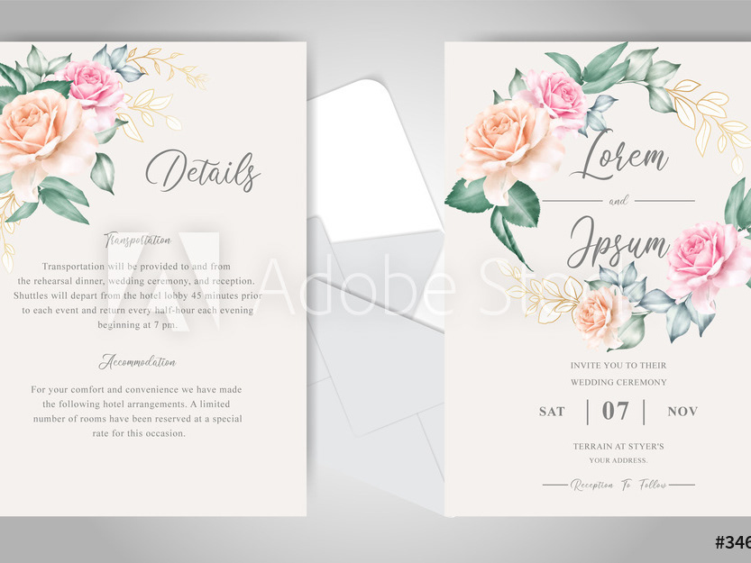 Wedding Invitation cards with Elegant Watercolor floral